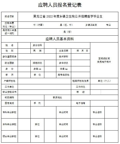 (http://wsjkw.hlj.gov.cn/),下载并填报应聘人员报名登记表(见附件2)。