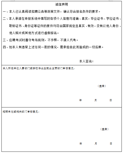4.应聘人员需要认真阅读填写说明,并详实准确地填写个人报名信息,经招聘单位现场确认后,作为拟聘用重要凭证请认真保存。应聘人员要对提交的信息和材料真实性负责,否则取消录取资格。