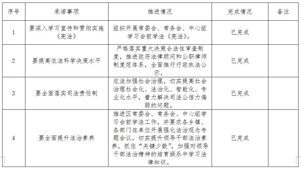 佳木斯市郊区“法治建设年”承诺事项完成情况