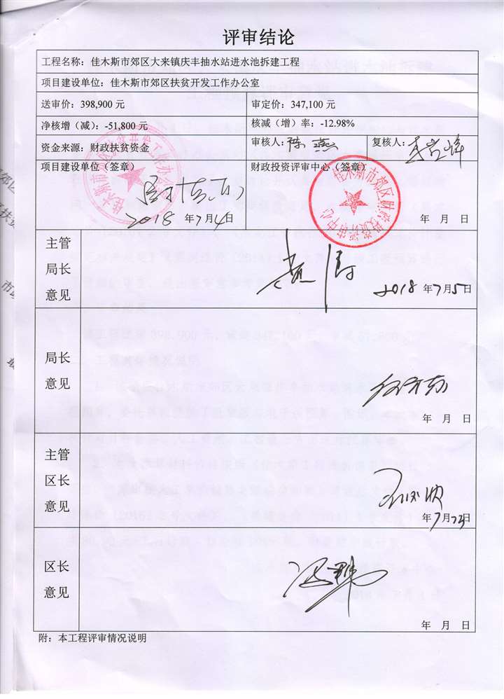 经大来镇庆丰村申请、村公示、大来镇政府呈报、区政府批复和区财政投资评审中心审定,该项目预算资金347,100元,现予以公告。