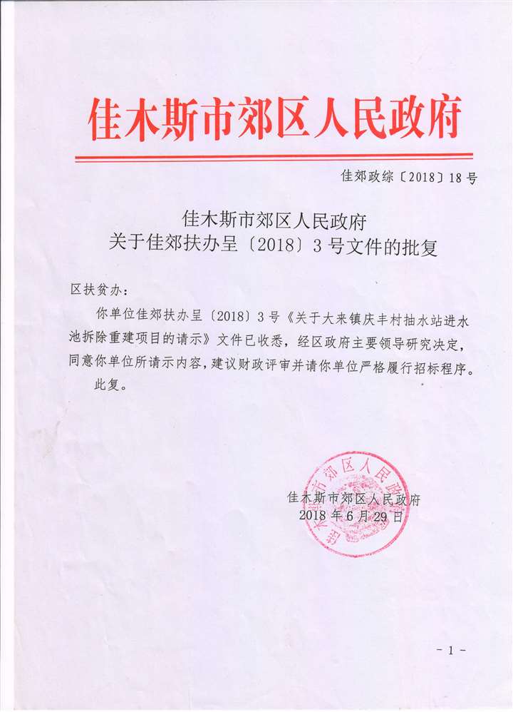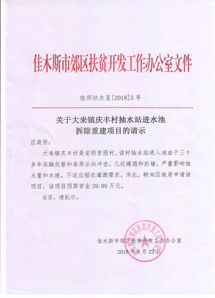 关于大来镇庆丰村抽水站进水池拆除重建项目的公告