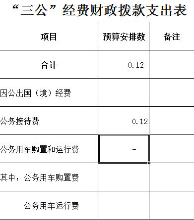 该表反映本单位因公出国(境)经费、公务接待费及公务用车购置和运行费预算安排数。