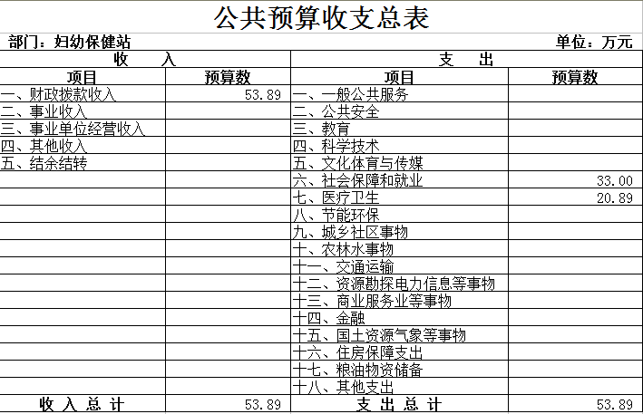 2014年,预算总收入53.89万元,其中:财政拨款收入 53.89万元。预算总支出53.89万元,其中:社会保障和就业支出33万元,医疗卫生支出20.89万元。工资福利支出18.6万元,商品和服务支出0.42万元,对个人和家庭补助支出34.87万元。