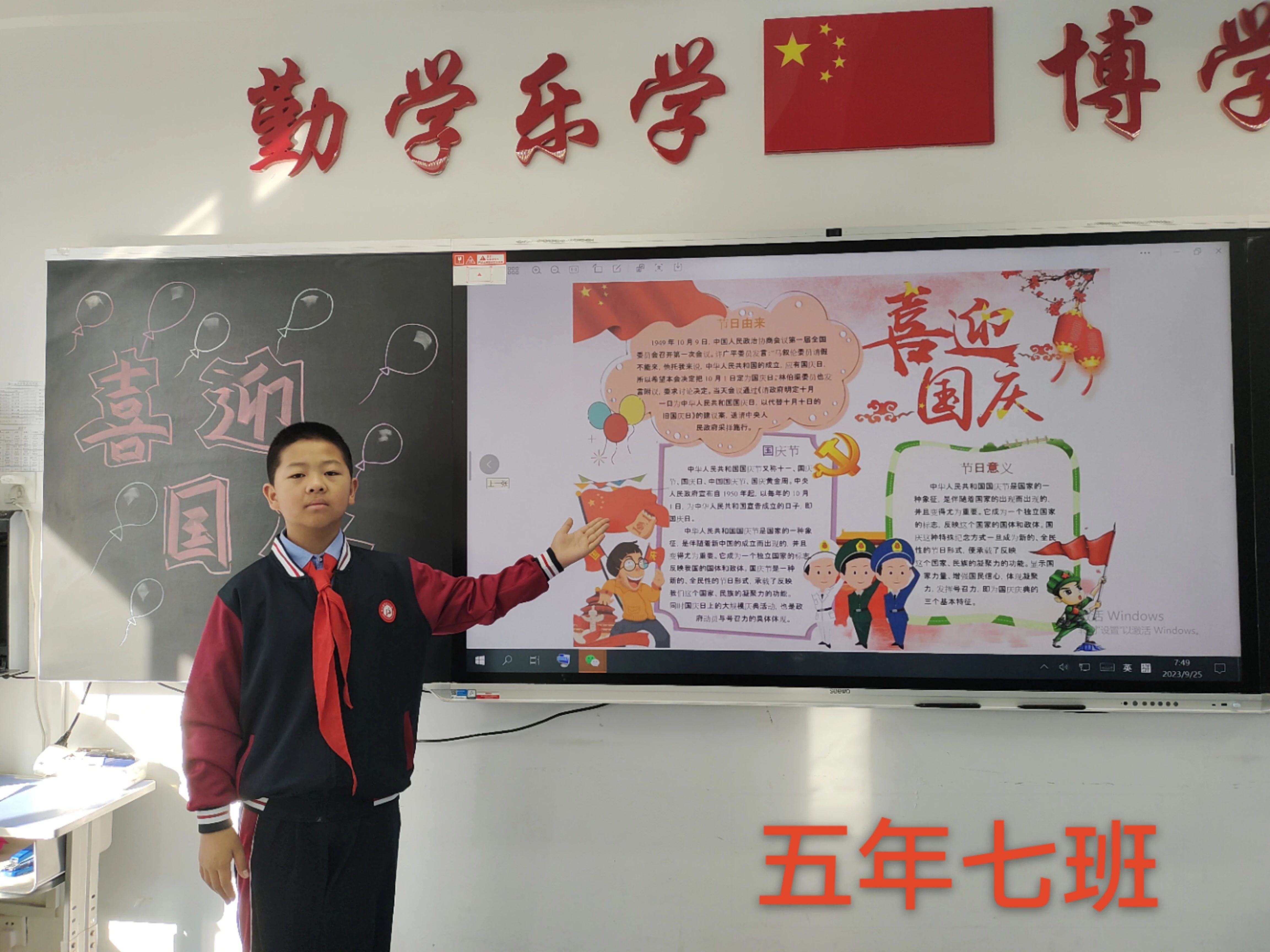 迈进金色的十月,在班会课上,同学们认真了解国庆节的来历、意义及祖国取得的伟大奇迹,增强了爱国情感,也激发了要更加努力学习报效祖国的热情和坚定信心。