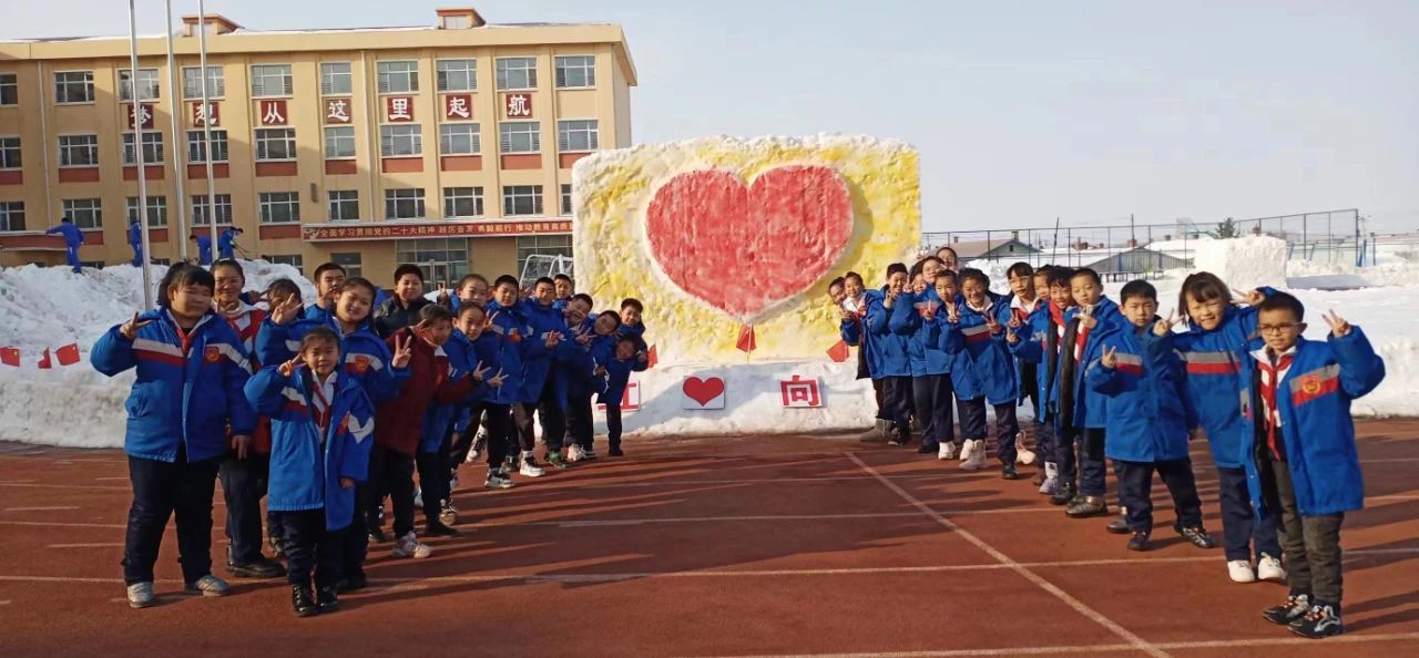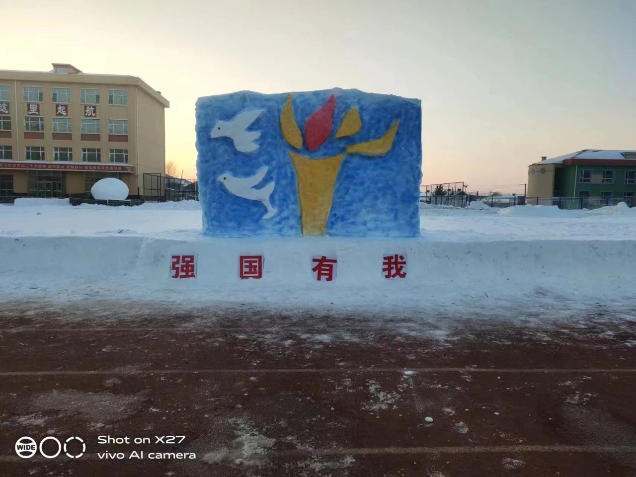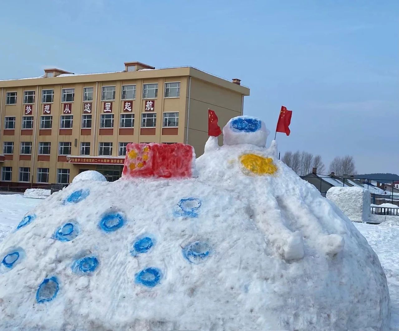 小雪雕、大内涵,小少年、大梦想,雪雕比赛中,同学们也各展才华。校园中的六座雪雕分别是:《强国有我》《红心向党》《中国航天梦》《小足球大梦想》《雪长城滑梯》。强国之中少年强、不忘报国不负党,每一座雪雕都展现着孩子们的远大抱负和坚定决心。