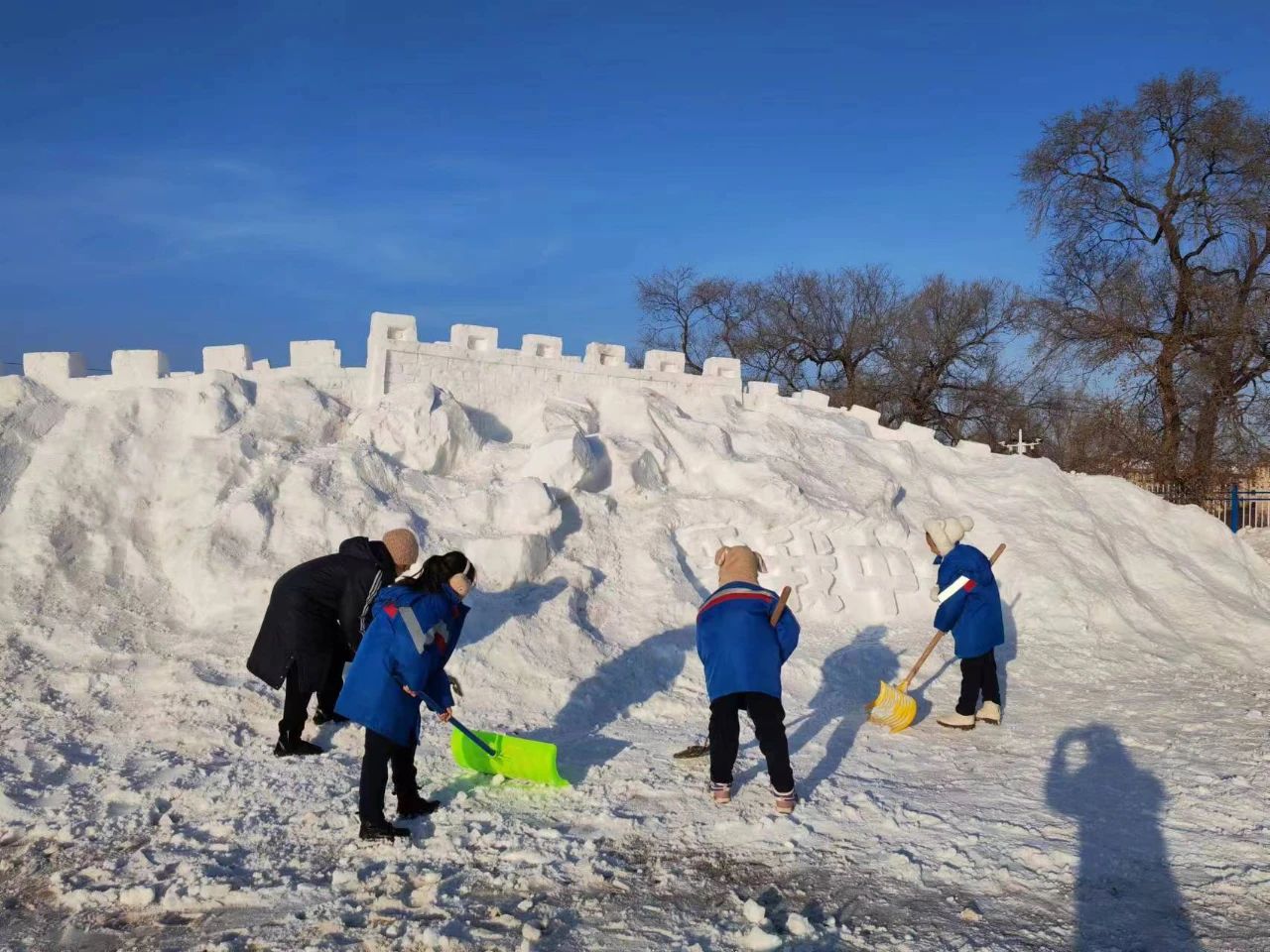 虽说堆雪人是东北孩子从小接触的娱乐活动,但要想制作一个造型精美、制作难度大的雪雕,对孩子们的思考能力和动手能力依然是一个巨大的考验。