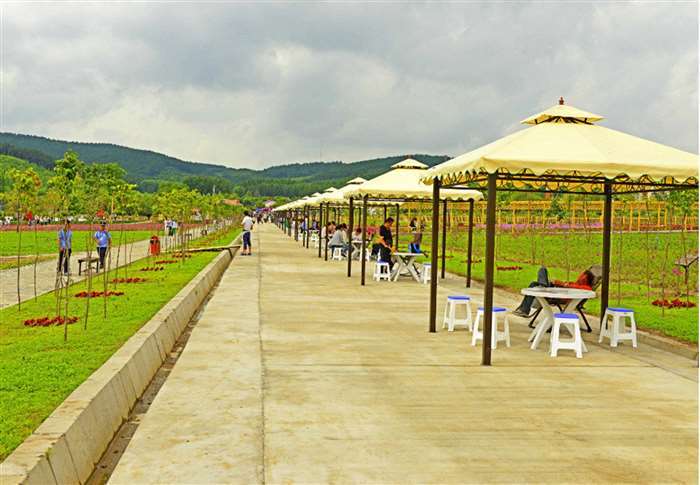 达勒花海位于大来岗景区内,是大来岗风景区最吸引人的景点之一。达勒花海于2016年夏季建成营业后,吸引了周边地区大量游客前来观赏。今年达勒花海总面积由2016年的13万平方米扩大到46万平方米, 有野花组合11公顷以及马鞭草、美国石竹、福禄考、千屈菜、百合等35个品种。其中花期最长的可达4—5个月。新增成片种植的12万平方米野玫瑰,并延长野玫瑰的产品产业链,开发制作玫瑰露、玫瑰花茶、玫瑰精油等。引进佳木斯大学凛香公司种植洋甘菊、雪菊、满天星等花卉品种,打造大学生创业示范基地。花海内建有主题雕塑、游园步道和木栈道、供游客休息的凉亭、异域风情欧式风车、可供观光休憩的木制观光长廊及景区服务室、电瓶车道等服务设施。花海内繁花似锦,种类繁多,色彩绚丽的花构成不同颜色的方阵,争相怒放,整个花海宛若一幅五彩斑斓的水彩画呈现在蓝天白云之下。闲暇之余,邀三五好友,唤七八亲朋,在花海观花、赏景、游玩、拍照,小聚一番,绝对是难得的休闲好时光。