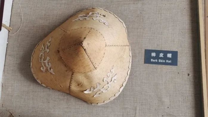 桦树皮工艺:赫哲族人为满足渔猎生产或日常生活的需要,他们不断提高和完善桦树皮工艺。日常生活用的桦树皮制品既有碗、杯、勺、盘、水桶等餐具,也有桦树皮帽、桦树皮盒和桦树皮箱等生活用品,随着木器、铁器、瓷器等生活器皿的传入,桦树皮制品渐次淡出了人们的生活。
