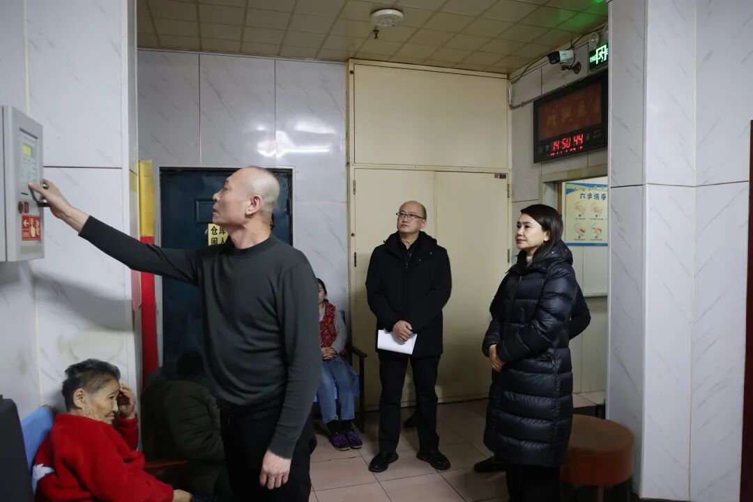 在英俊街道幸福老年公寓,郝旺一行实地走访老人宿舍、食堂、消防控制室等重点区域,查看消防栓、火灾自动报警系统等消防安全设施设备运行及疏散通道畅通情况,检查老人饮食安全、用火用电管理、应急预案执行和安全演练开展情况,重点了解安全管理制度落实和隐患排查整改工作,针对发现的问题现场研究确定解决方案。她强调,养老服务机构是人员密集场所,老人行动不便、自救能力较弱,做好安全生产工作至关重要、不容松懈。要加强养老机构安全生产业务指导和日常管理,配齐配强各类消防设备,完善安全措施,提升消防安全管理水平,增强应急处置和自防自救能力。相关行业部门要切实履行监管责任,加强常态化监督检查和指导帮扶,举一反三排查各类风险点,及时发现并督促整改各类安全隐患,建立健全监督机制,确保各项安全措施得到有效执行。养老机构要切实履行安全主体责任,加强工作人员消防安全培训和应急演练,确保每位员工都能熟练掌握紧急情况下的应对措施。要坚持以人民为中心的发展思想,坚决杜绝松懈心理和麻痹思想,形成“部门监管、机构尽责、多方协同”的工作格局,为老人提供一个更加安全、舒适的居住环境,切实守护好老年群体的晚年生活。