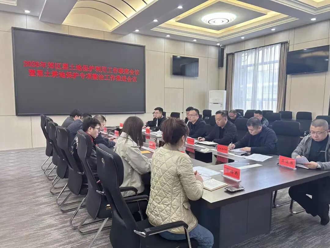 会议指出了黑土地保护是一项系统工程,必须进一步提高政治站位,凝聚共识,形成齐抓共管的工作合力。会议围绕核心任务,重点部署三方面工作:一是细化职责分工,强化协同联动。进一步明确各成员单位职责:农业农村局负责黑土质量保护、高标准农田建设和耕作层剥离土壤计划监管;郊区公安分局负责涉黑土违法犯罪线索快查快办;区林草局、生态环境局、水务局、市场局、交通局、财政局、发改局等部门依据职能,分别承担林地湿地保护、污染防治、水土流失防治、市场与运输环节监管、资金保障与计划统筹等工作;各乡镇严格落实属地责任,做好日常监管、耕地目标落实、耕作层剥离利用全过程监管及盗采排查治理等具体任务。二是聚焦问题整改,压实主体责任。针对历年督察、巡视巡察、审计、专项检查及第二轮中央生态环境保护督察反馈问题开展“回头看”,建立“6+12+17+39”问题清单,实施攻坚整改。明确要求杜绝问题反弹,压实部门与属地监管责任,对未完成整改的问题逐一明确路径与时限,实行台账动态管理,加强协调联动,确保整改有序推进。三是健全闭环机制,严肃工作纪律。建立由自然资源部门牵头的整改情况周报制度,直报区委、区政府。要求各乡镇、各行业主管部门主要领导亲自牵头、全程盯办,确保整改任务落实到位。
