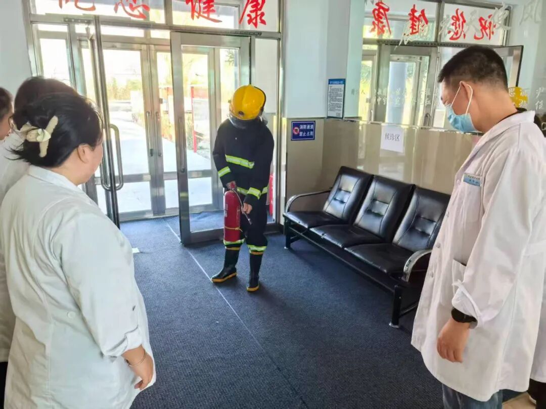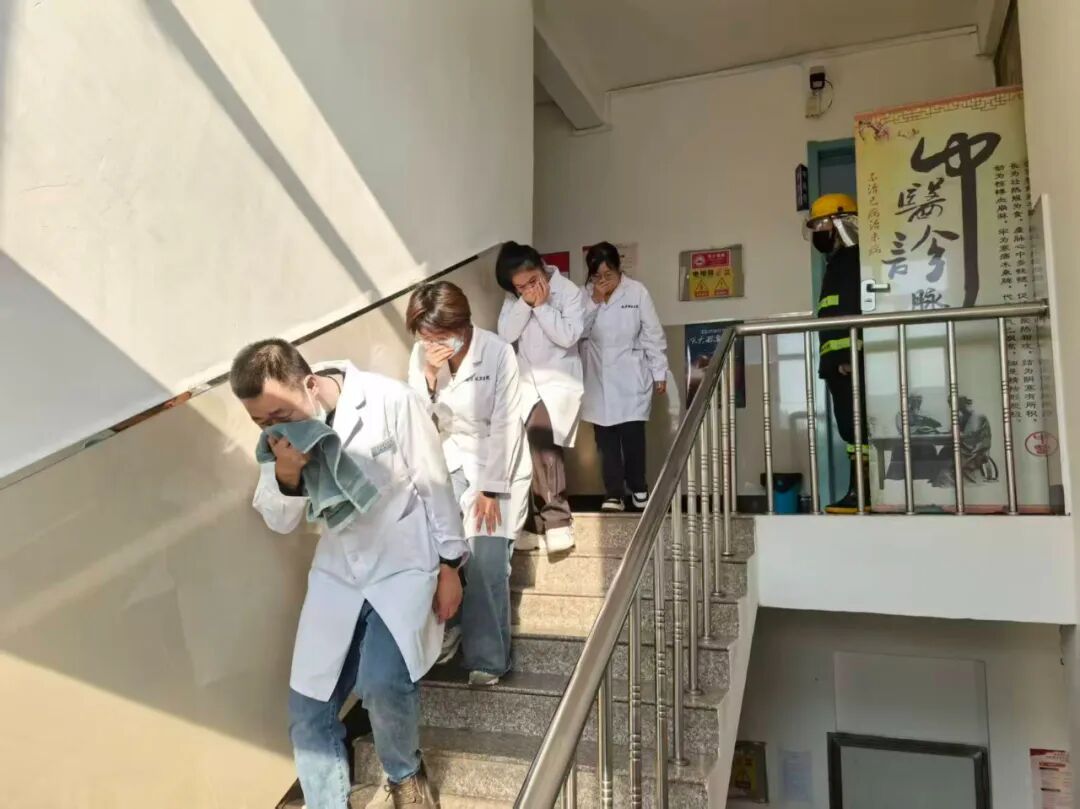 培训结束后,消防应急演练随即启动。演练模拟门诊突发火情场景,疏散引导组、灭火行动组分工明确、协作有序,高效完成人员撤离、火源扑灭等操作,充分展现出扎实的应急处置能力。