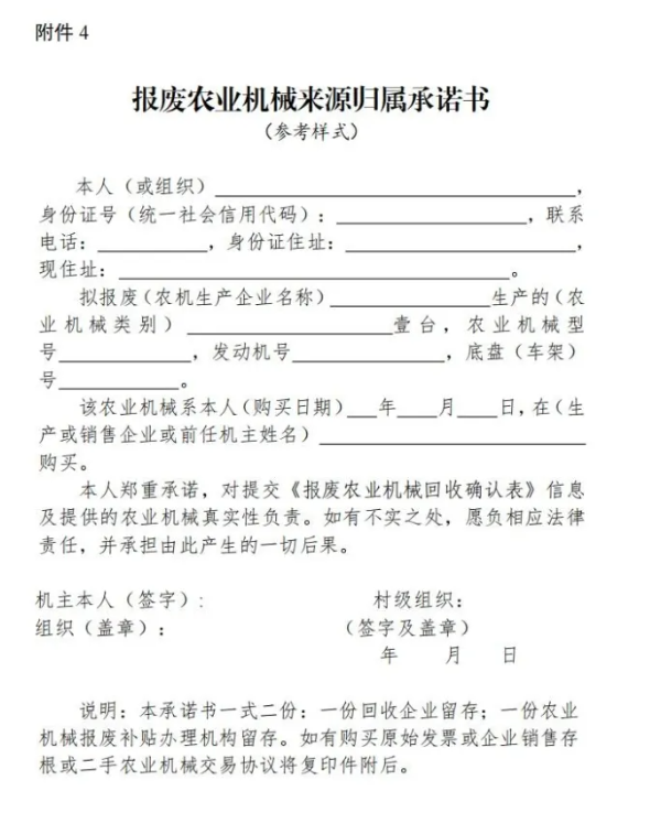 4.报废农业机械来源归属承诺书(参考样式)