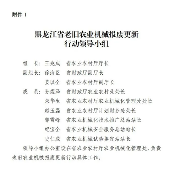 附件:1.黑龙江省老旧农业机械报废更新行动领导小组