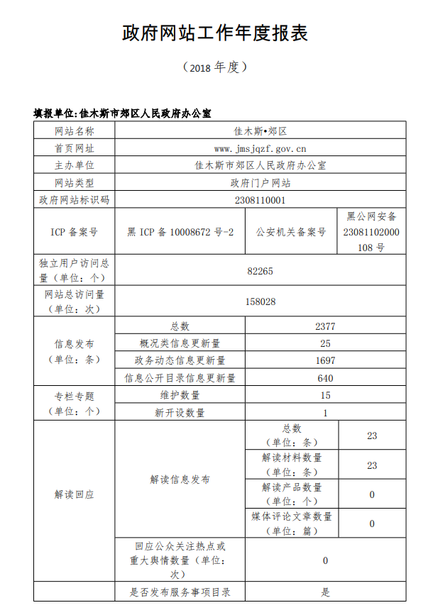 2018年郊区人民政府网站工作年度报表