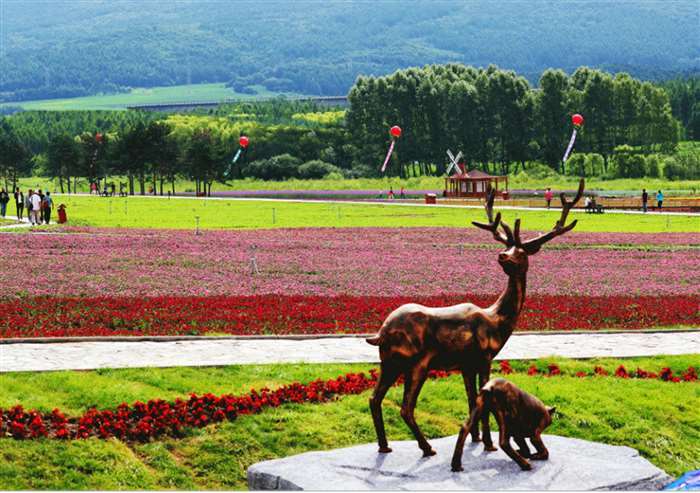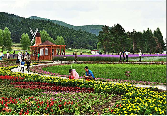 达勒花海位于大来岗景区内,是大来岗风景区最吸引人的景点之一。达勒花海于2016年夏季建成营业后,吸引了周边地区大量游客前来观赏。今年达勒花海总面积由2016年的13万平方米扩大到46万平方米, 有野花组合11公顷以及马鞭草、美国石竹、福禄考、千屈菜、百合等35个品种。其中花期最长的可达4—5个月。新增成片种植的12万平方米野玫瑰,并延长野玫瑰的产品产业链,开发制作玫瑰露、玫瑰花茶、玫瑰精油等。引进佳木斯大学凛香公司种植洋甘菊、雪菊、满天星等花卉品种,打造大学生创业示范基地。花海内建有主题雕塑、游园步道和木栈道、供游客休息的凉亭、异域风情欧式风车、可供观光休憩的木制观光长廊及景区服务室、电瓶车道等服务设施。花海内繁花似锦,种类繁多,色彩绚丽的花构成不同颜色的方阵,争相怒放,整个花海宛若一幅五彩斑斓的水彩画呈现在蓝天白云之下。闲暇之余,邀三五好友,唤七八亲朋,在花海观花、赏景、游玩、拍照,小聚一番,绝对是难得的休闲好时光。