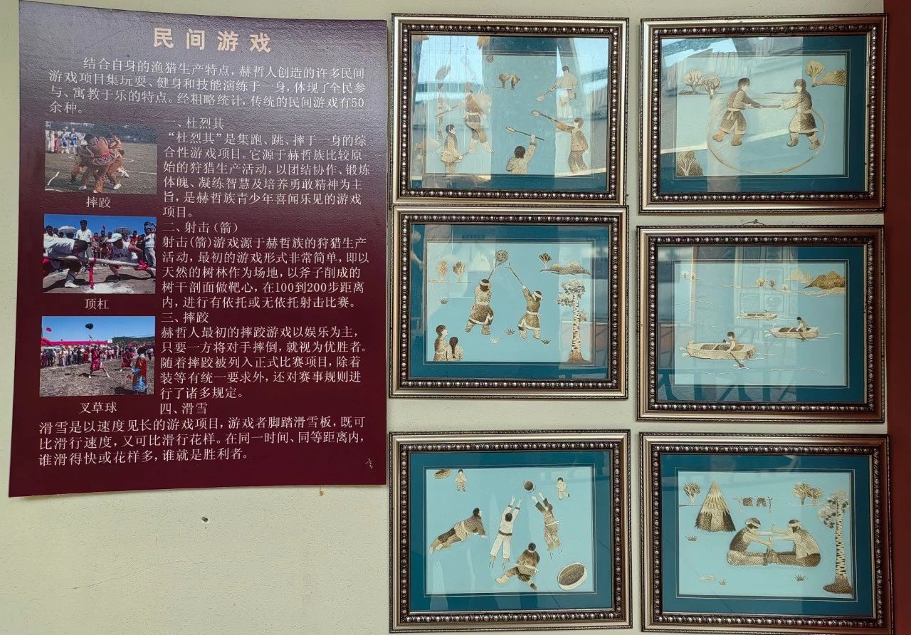 赫哲族文博馆风格独特,是集文化馆、博物馆、图书馆、赫哲族艺术团、非物质文化遗产保护中心五位一体的公益性文化展馆。今天为大家线上展出的板块是:《民间游戏》是赫哲族民间游戏娱乐文化的萌发与赫哲族的生产、生活实践密切相关。