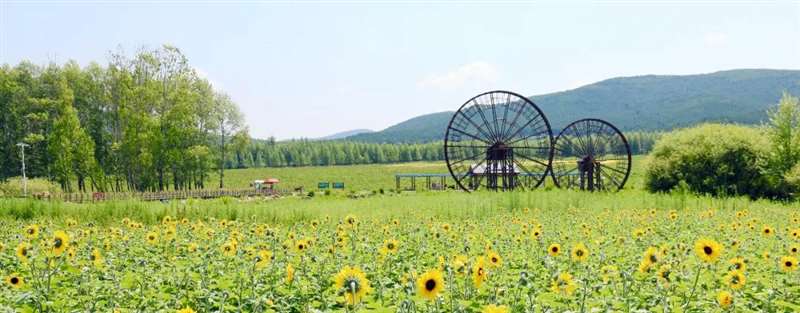 郊区达勒花海位于郊区大来镇,6-8月是一年之中的最佳赏花期。远山、水车和五彩斑斓的花海组合在一起,构成了一幅天然的画卷。