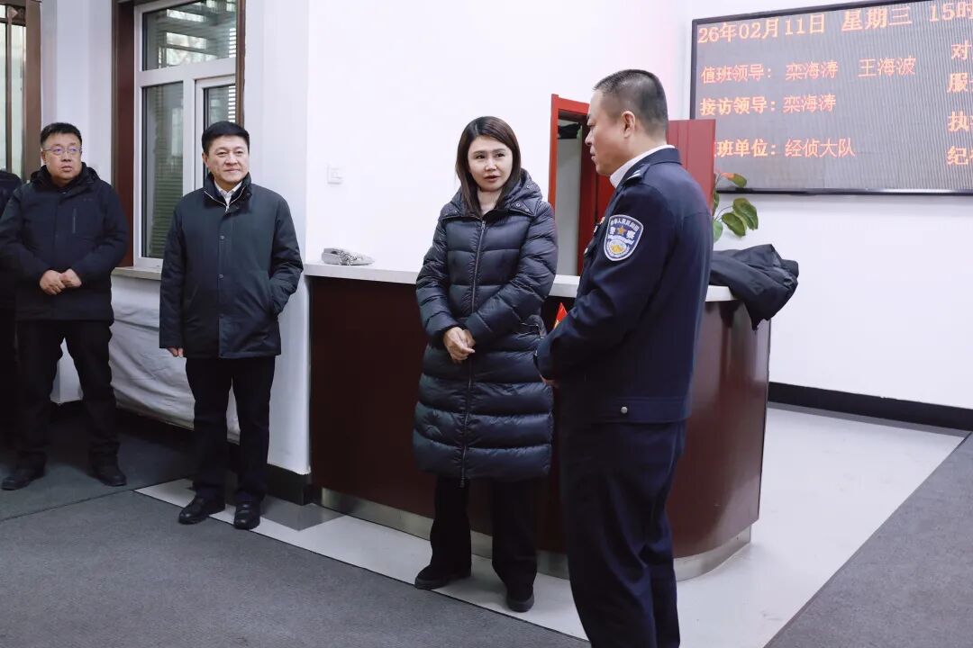 在区公安分局,郝旺与在岗民警辅警亲切交流,详细了解春节期间安保部署、勤务运转、后勤保障等情况。郝旺表示,过去一年,全区民警辅警始终坚守岗位、忠诚履职,在维护辖区社会稳定、服务经济发展、处置各类突发事件中发挥了重要作用,要始终牢记“对党忠诚、服务人民、执法公正、纪律严明”的总要求,坚持党对公安工作的绝对领导,持续提升打击犯罪、服务群众、护航发展的能力水平,以更饱满的热情、更昂扬的斗志全力守护社会安定大局,为郊区高质量发展创造更加安全和谐的社会环境。