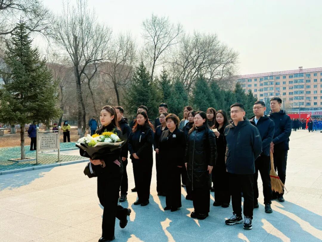 春风寄哀思,松柏颂英雄。到达刘英俊烈士陵园后,全体干部职工身着正装、整齐列队,怀着无比崇敬的心情来到烈士纪念碑前,肃立默哀片刻,静静追忆刘英俊烈士为人民利益挺身而出、舍生取义的英雄事迹,深刻感悟革命先烈的忠诚与担当,表达对革命先烈的深切怀念和崇高敬意。