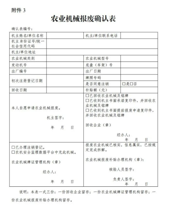 3.农业机械报废确认表
