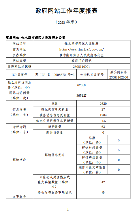 郊区政府网站工作年度报表(2023年度)