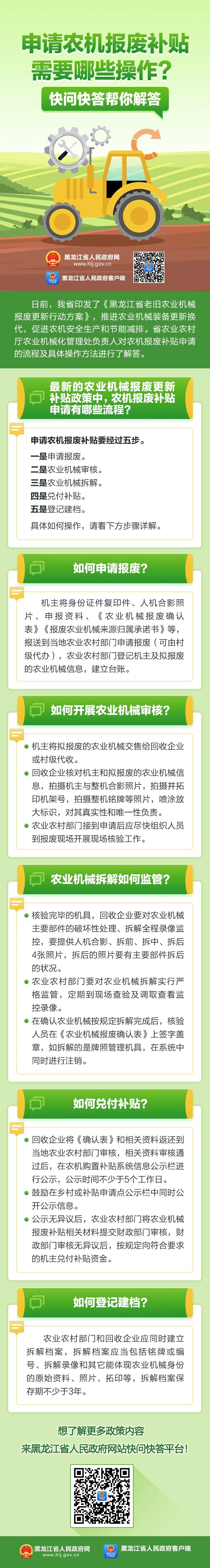 相关稿件:关于转发《黑龙江省老旧农业机械报废更新行动方案》的通知 http://www.jmsjqzf.gov.cn/jq/c100036/202408/c04_177358.shtml